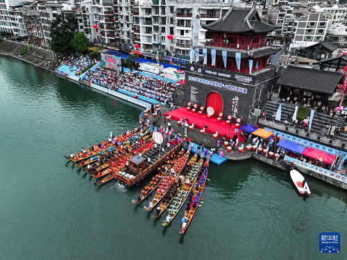 7月22日,2025年民體杯全國(guó)龍舟比賽在貴州省黔東南苗族侗族自治州鎮(zhèn)遠(yuǎn)古城開幕。來(lái)自全國(guó)各地的10支龍舟隊(duì)伍同場(chǎng)競(jìng)技,在鎮(zhèn)遠(yuǎn)古城的?陽(yáng)河上參加為期兩天的水上競(jìng)速。賽事期間同時(shí)舉辦非遺展演、“龍神嫁妹”主題巡演等豐富多彩的活動(dòng)。