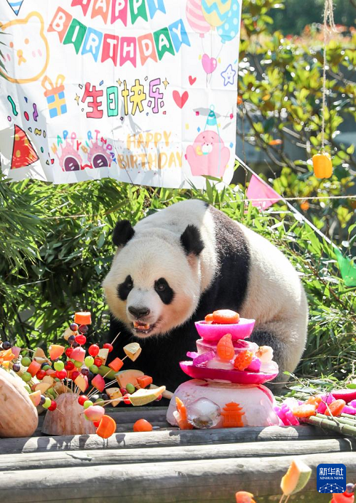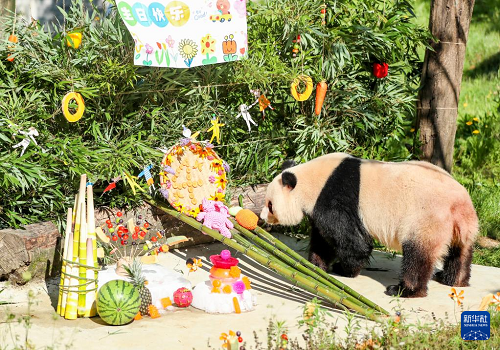 7月27日,大熊貓“林溪”“一家”在四川省廣安市華鎣山熊貓?jiān)?,分別迎來4歲和6歲生日,飼養(yǎng)員為它倆舉行了一場別開生面的生日會。