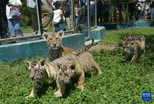 今年3月份以來(lái),位于黑龍江省牡丹江市海林市的橫道河子?xùn)|北虎林園陸續(xù)有40只東北虎幼崽降生,在工作人員精心照顧下,虎寶寶們茁壯成長(zhǎng),盡顯活潑可愛(ài)。
