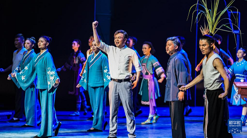 7月30日晚,民族歌舞劇《山河同心》在貴陽(yáng)市貴州飯店國(guó)際會(huì)議中心上演。該劇將屯堡地戲、苗族歌舞、布依族音樂(lè)等傳統(tǒng)藝術(shù)與現(xiàn)代舞臺(tái)表現(xiàn)有機(jī)融合,講述抗日戰(zhàn)爭(zhēng)時(shí)期,安順地區(qū)的百姓送子參軍、各族群眾共赴國(guó)難的故事,展現(xiàn)了貴州各族兒女在抗日戰(zhàn)爭(zhēng)中的家國(guó)情懷和民族大義。