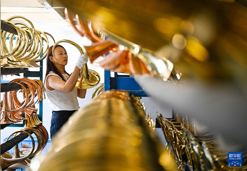 位于天津市靜海區(qū)的蔡公莊鎮(zhèn)是國內(nèi)西洋管樂器集中生產(chǎn)與集散中心之一。近年來,當(dāng)?shù)卦谄放拼蛟?、?guī)劃設(shè)計、專業(yè)人才培養(yǎng)等多方面持續(xù)發(fā)力,推進(jìn)樂器文化創(chuàng)意產(chǎn)業(yè)基地建設(shè),不斷提升樂器產(chǎn)業(yè)的知名度與影響力。