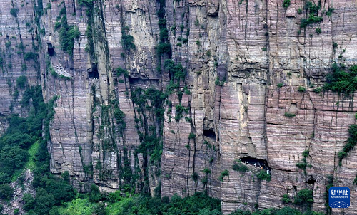 這是位于絕壁峽谷上的郭亮村(8月16日攝)。(新華社記者 朱祥 攝)