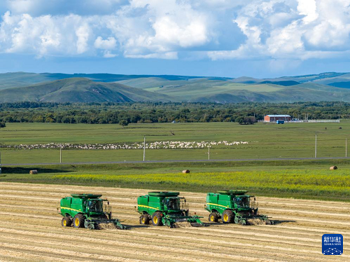 近日,位于內(nèi)蒙古呼倫貝爾市額爾古納市的呼倫貝爾農(nóng)墾拉布大林農(nóng)場19.22萬畝小麥迎來豐收季,當?shù)剞r(nóng)民搶抓農(nóng)時,以大規(guī)模機械化的方式開展收割、晾曬作業(yè)。
