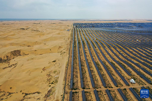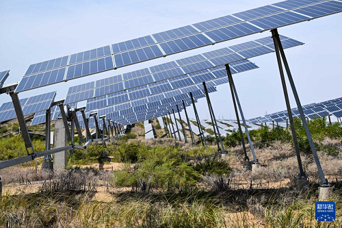 內(nèi)蒙古鄂爾多斯市達拉特旗境內(nèi)的庫布其沙漠里,一塊塊藍(lán)色光伏板鱗次櫛比、鋪陳排開,將沙海變成綠能涌動的“藍(lán)?!薄=陙?,達拉特旗依托光伏基地建設(shè),推廣應(yīng)用“光伏治沙”模式,實現(xiàn)光伏板上發(fā)綠電,板下治理沙漠生態(tài),既帶動新能源產(chǎn)業(yè)發(fā)展,也促進庫布其沙漠治理。