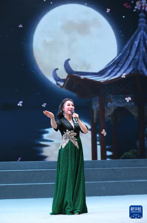 9月13日晚,在定西市隴中許鐵堂秦腔劇院,演員演唱黃梅戲《孔雀東南飛》。(新華社發(fā) 王克賢 攝)