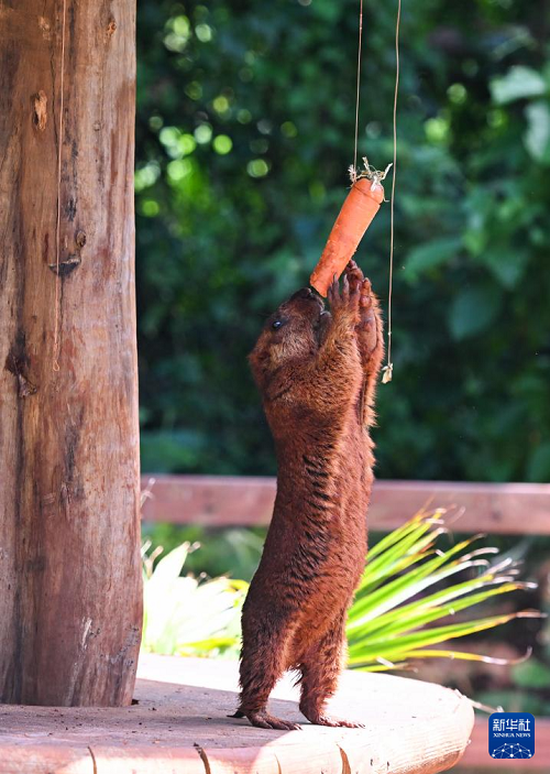 這是9月14日在海南熱帶野生動植物園拍攝的旱獺。(新華社記者 楊冠宇 攝)