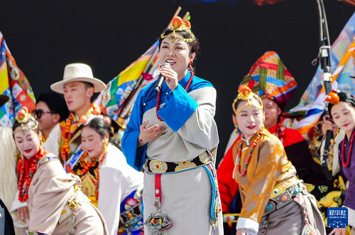 這是9月15日拍攝的開幕式上的女聲獨唱《藏東明珠》。(新華社記者 格桑朗杰 攝)