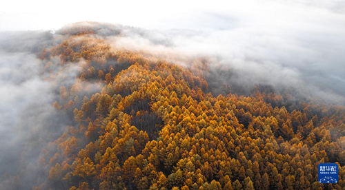 9月29日拍攝的內(nèi)蒙古阿爾山國家森林公園景色(無人機照片)。(新華社記者 貝赫 攝)