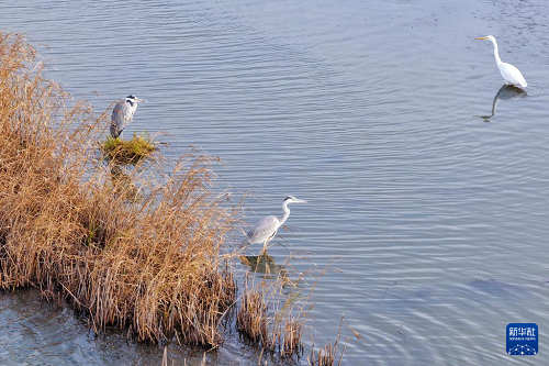10月14日在黑龍江省同江市三江口國(guó)家濕地公園拍攝蒼鷺和白鷺。(新華社發(fā) 劉萬平 攝)