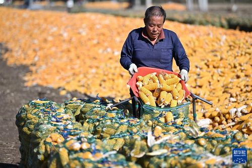 10月21日,天津市薊州區(qū)下窩頭鎮(zhèn)農(nóng)民在分裝玉米。(新華社記者 李然 攝)
