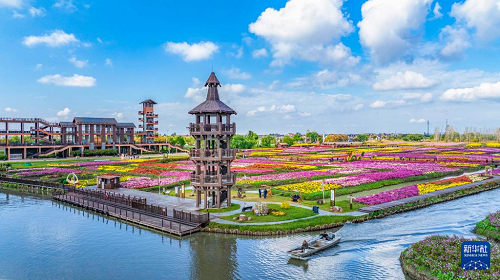 11月2日,游客在江蘇省興化市千垛景區(qū)賞菊游玩(無人機(jī)照片)。(新華社發(fā) 周社根 攝)