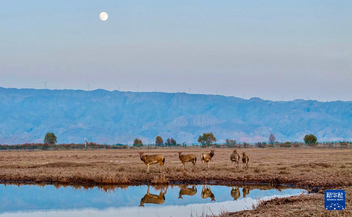 青銅峽庫(kù)區(qū)濕地自然保護(hù)區(qū)總面積174.93平方公里,是寧夏最大的黃河灘涂類型濕地。2024年9月底,35頭麋鹿落戶青銅峽庫(kù)區(qū)濕地自然保護(hù)區(qū),經(jīng)過(guò)一個(gè)月適應(yīng)期后被野放在200余畝的圍欄內(nèi)。目前,隨著6只麋鹿幼崽的誕生,當(dāng)?shù)伧缏狗N群繁育工作邁入新階段,放歸區(qū)域從200余畝擴(kuò)展至3000余畝,保護(hù)工作也從遷地?cái)U(kuò)繁轉(zhuǎn)向野化放歸,開啟了黃河流域?qū)幭亩紊锒鄻有员Wo(hù)的新篇章。