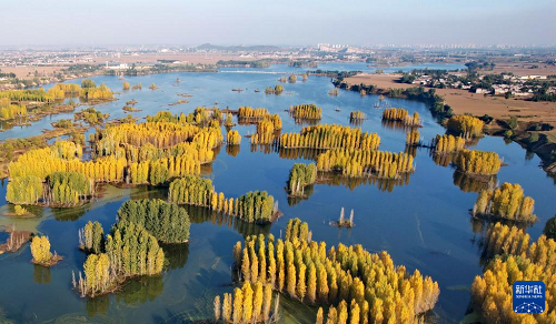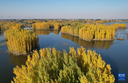 初冬時(shí)節(jié),在河北省邢臺市隆堯縣亦城村泜河沿岸,樹葉金黃,與水面、河岸相映襯,勾勒出一幅美麗和諧的自然畫卷。