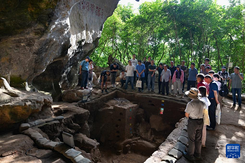 11月8日,考古專家在三亞落筆洞遺址觀察發(fā)掘現(xiàn)場(chǎng)。(新華社記者 郭程 攝)