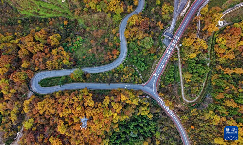 11月10日拍攝的湖北省襄陽市??悼h馬橋鎮(zhèn)景色(無人機照片) 。(新華社發(fā) 陳泉霖 攝)
