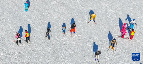12月6日,滑雪愛好者在黑龍江省亞布力滑雪旅游度假區(qū)雪場體驗滑雪(無人機照片)。(新華社發(fā) 原勇 攝)