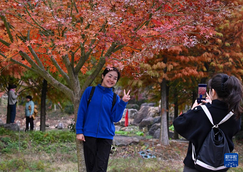 12月9日,游人在福州九峰村游玩拍照。(新華社記者 姜克紅 攝)