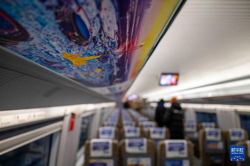 這是1月4日拍攝的“哈爾濱冰雪大世界”主題高鐵列車G1276車廂。(新華社記者 張濤 攝)