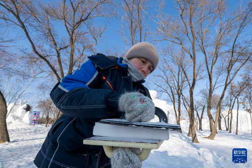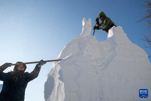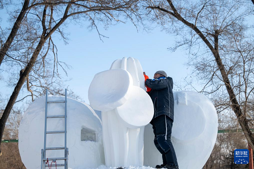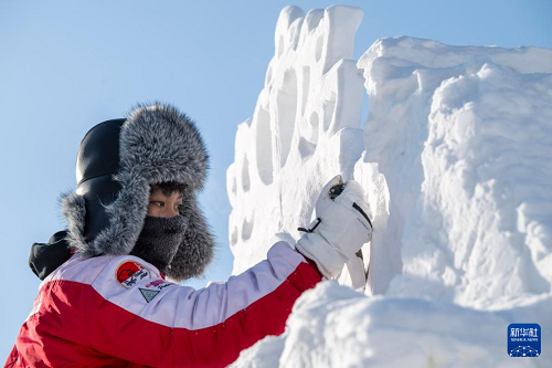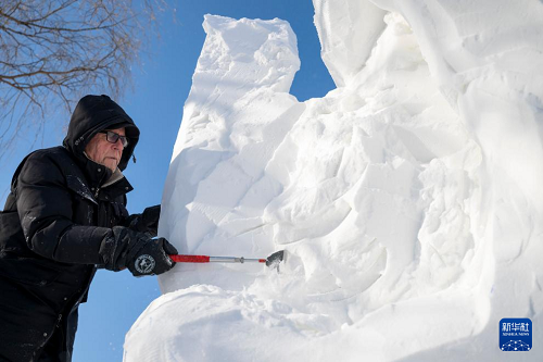1月7日,在哈爾濱太陽島雪博會(huì)園區(qū),來自13個(gè)國家的25支代表隊(duì)百余位藝術(shù)家在寒冬中堅(jiān)持藝術(shù)創(chuàng)作,精雕細(xì)琢雪雕作品。