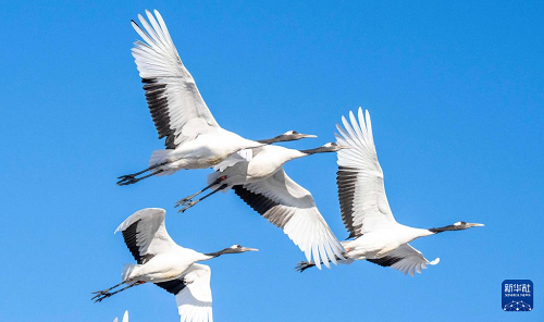 1月22日在黑龍江扎龍國(guó)家級(jí)自然保護(hù)區(qū)拍攝的丹頂鶴。(新華社發(fā) 何華文 攝)