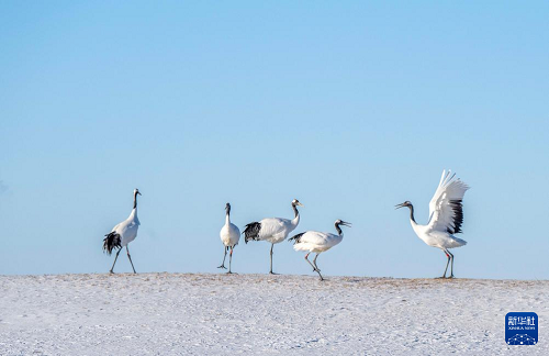 時(shí)值深冬,位于黑龍江省齊齊哈爾市的黑龍江扎龍國(guó)家級(jí)自然保護(hù)區(qū)銀裝素裹,冰雪中起舞飛翔的丹頂鶴吸引游客前來(lái)參觀、拍照。