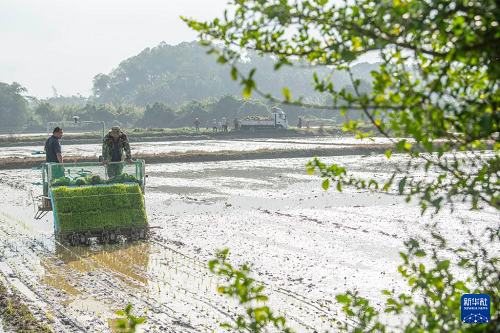 2月4日,海南省瓊海市嘉積鎮(zhèn)農(nóng)民在田間插秧。(新華社發(fā) 蒙鐘德 攝)