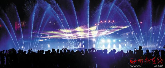 公園在注重園林、景觀建設(shè)的同時(shí),突出主題文化內(nèi)涵的展現(xiàn),湖水噴泉、觀賞果園、主題植物園、階梯花臺(tái)等特色園林具有觀賞性,園內(nèi)還配套建有遺山文化館、張拉膜廣場(chǎng)、健舞劇場(chǎng)、休閑茶吧、咖啡館等群眾休閑活動(dòng)場(chǎng)所,是又一惠及民生的心靈家園。圖為8月1日晚,市民在遺山公園噴泉廣場(chǎng)觀賞絢麗多彩的噴泉燈光秀。劉紀(jì)森 智芝龍 白曉明 胡 煒 攝
