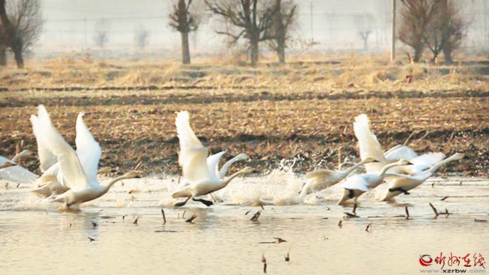近日,在定襄縣受祿鄉(xiāng)附近的一片水域內(nèi),成群的天鵝擇水而棲,有的展翅秀舞姿,有的追逐互嬉戲。白羽翩翩,優(yōu)雅靈動,成為一道亮麗的風景。