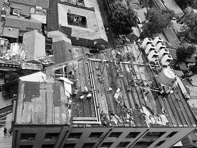 由于違建巨大,工人只能先從違建的頂層入手,將空調(diào)外機以及水泵等設施進行拆除?!皬哪壳暗那闆r看,估計全部拆除完畢得近一個月的時間”,工作人員告訴記者,按照之前核算的拆違費用,預計全部拆完要50多萬元,目前這些費用只能由街道墊付,待強拆結束后依照相關的法律程序再依法追回。