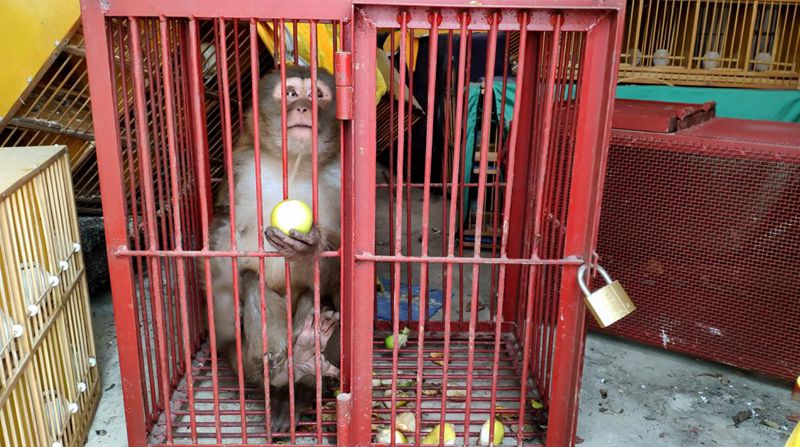 2月18日,文山州丘北縣森林公安局民警在深入轄區(qū)村寨開展野生動物保護及疫情防控知識宣傳過程中,解救了一只猴子,涉案嫌疑人被依法立案調(diào)查。經(jīng)查,嫌疑人何某2016年2月在南盤江捕魚時,發(fā)現(xiàn)湍急的江水中有一只猴子正在奮力游泳企圖上岸,看起來已經(jīng)體力不支。何某利用手中的捕魚網(wǎng)將猴子捕獲上岸后,將猴子帶回家中飼養(yǎng)至被民警查獲。
