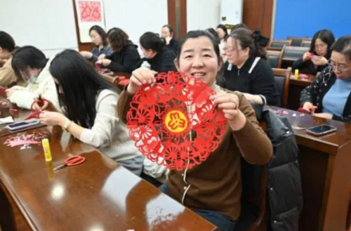 活動現(xiàn)場歡聲笑語不斷,平日里手握案卷、伏案辦案的女檢察干警們化身“非遺匠人”,在傳統(tǒng)與現(xiàn)代的交織中釋放壓力、陶冶情操。“每一剪都像辦案一樣需要耐心和細(xì)致”“剪去冗余,留下精華,這和工作追求極致不謀而合”——干警們從剪紙藝術(shù)中品悟檢察工作的匠心之道。