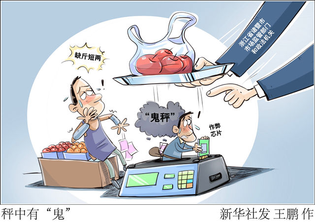 一臺(tái)小小的“鬼秤”,不僅侵害群眾合法權(quán)益,更有損公平誠(chéng)信的市場(chǎng)環(huán)境。執(zhí)法部門要主動(dòng)作為,為公序良俗撐腰,讓群眾利益得到保障;另一方面,遭遇缺斤短兩問題,消費(fèi)者也不要忍氣吞聲,多和不法現(xiàn)象“較真”:買完菜上“安心秤”復(fù)稱一下,對(duì)不法行為堅(jiān)決舉報(bào)。大家合力,一起讓“鬼秤”無(wú)處遁形。