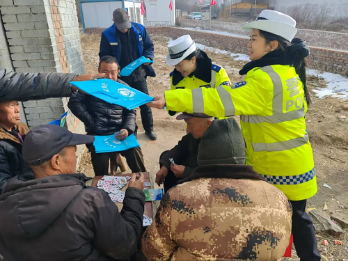 1月29日,五臺(tái)縣公安局交管大隊(duì)綜合中隊(duì)宣傳民輔警走進(jìn)國(guó)道338沿線東馬村、興鄭村,開展“平安春運(yùn) 交警同行”主題宣傳活動(dòng),將交通安全知識(shí)送到田間地頭、農(nóng)家院落,為即將到來(lái)的春運(yùn)保駕護(hù)航。