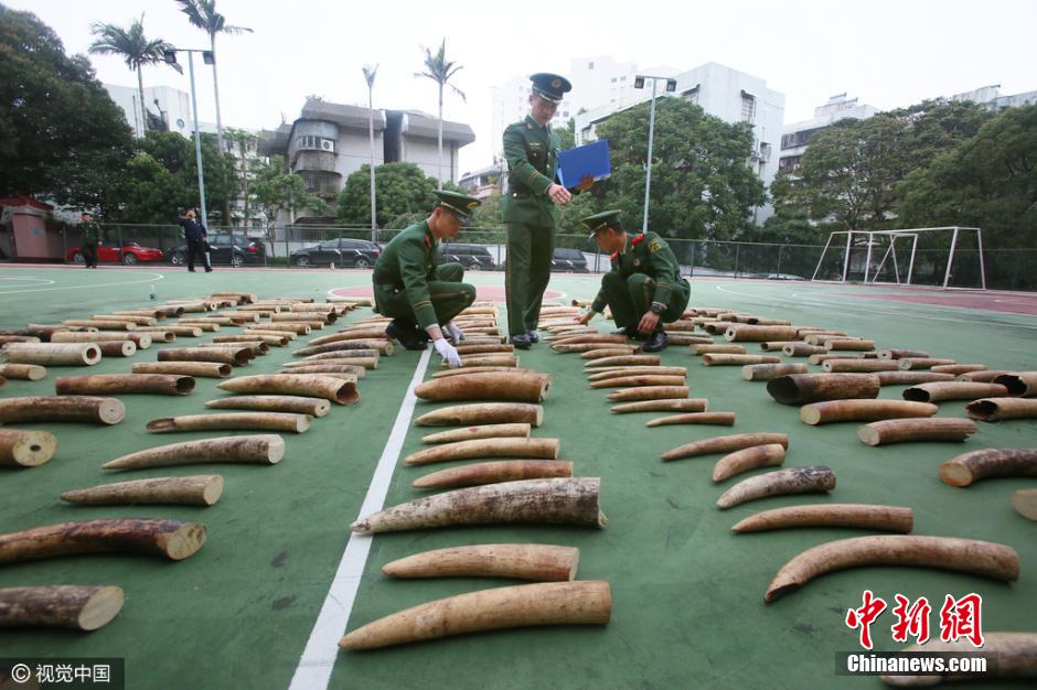 3月21日,廣東公安邊防總隊(duì)正式對(duì)外通報(bào)稱,珠海市邊防支隊(duì)成功破獲一起特大涉嫌走私象牙案,查獲走私象牙221塊,共計(jì)約450千克,市值1800萬元人民幣,這是近年來全國邊防部門查獲的最大宗走私象牙案。圖片來源:視覺中國