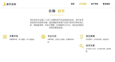 易行泊車官網(wǎng)上的自我介紹,稱是“自駕前往機(jī)場的最佳選擇”。網(wǎng)絡(luò)截圖