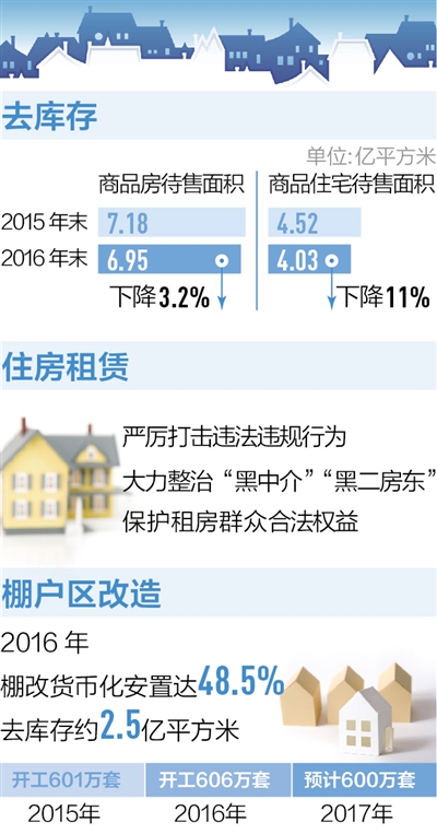 去庫存是2016年經(jīng)濟(jì)工作的重點(diǎn)任務(wù)之一。去年末,我國商品房待售面積為6.95億平方米,比2015年末下降了3.2%,去庫存取得初步成效?!靶滦统擎?zhèn)化是去庫存根本途徑。”陳政高說,據(jù)調(diào)查,有的城市去年農(nóng)民工和農(nóng)民買房占整個買房量的50%,有的縣城達(dá)到70%,“今年,要繼續(xù)抓好三四線城市去庫存。”