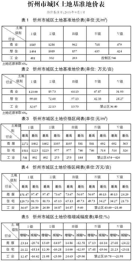 忻州市新一輪城鎮(zhèn)土地面積134.99平方公里基準(zhǔn)地價更新工作已經(jīng)省國土資源廳組織有關(guān)專家檢查驗(yàn)收。根據(jù)《山西省國土資源廳關(guān)于忻州市城鎮(zhèn)土地定級估價更新結(jié)果的批復(fù)》(晉國土資技審〔2015〕118號),現(xiàn)將忻州市城鎮(zhèn)土地基準(zhǔn)地價予以公布實(shí)施。 2015年12月31日
