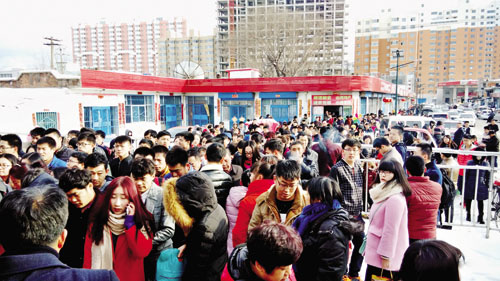 2月13日,一場大雪讓五寨縣火車站變得擁擠起來。當(dāng)日是春節(jié)假日的最后一天,不少回家過年的外地工作者返程,恰巧前一天縣城迎來一場大雪,造成公路交通不便,使得更多的人選擇了乘火車返程。但臨時改變出行方式讓這些人很難買到票。(許凈 攝)