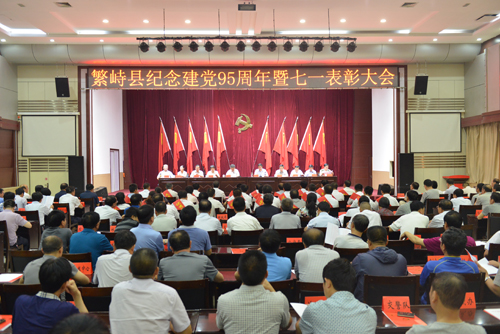 在建黨九十五周年來(lái)臨之際,6月30日上午,繁峙縣專(zhuān)門(mén)召開(kāi)建黨九十五周年暨“七一”表彰大會(huì),隆重對(duì)條條戰(zhàn)線涌現(xiàn)出來(lái)沙國(guó)平、張宏偉、劉成等100名優(yōu)秀黨員,李全銀、韓春芳等48名優(yōu)秀黨務(wù)工作者,繁城鎮(zhèn)北城街黨總支、筆峰村黨支部等60個(gè)優(yōu)秀基層組織進(jìn)行了表彰。