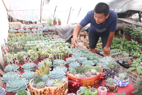 7月6日,原平市柳巷村福地花圃的花農(nóng)正在細(xì)心管理自己種植的多肉植物。近年來(lái),該市不斷調(diào)整種植結(jié)構(gòu),引導(dǎo)農(nóng)戶發(fā)展多肉植物等花卉產(chǎn)業(yè),有效地促進(jìn)了農(nóng)民增收致富。(褚震 攝)