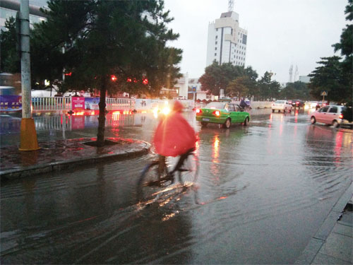 7月19日下午,連陰暴雨稍有緩解。記者首先驅(qū)車趕到市醫(yī)院舊址路段,這里是昔日波濤洶涌的地方,而今是紅綠燈灼灼,街面車來人往,雨流順暢。在人流密集、鋪面林立的老巷利民街,打傘買賣的人們絡(luò)繹不絕。記者沿主干道七一路北上,繞云中河景區(qū)一圈,沿牧馬路返回,再往建設(shè)路逡巡。在忻州污水處理廠,值班的高經(jīng)理告訴記者,市內(nèi)主干、支干及管道全部實施雨水、污水分流,全部暢通無阻,日處理能力在6萬噸以上。云中河景區(qū)主任孫曉雷早已領(lǐng)著職工沖向一線,在分流壩上調(diào)度洶涌的雨水,嘗試補(bǔ)充需求在70萬立方米以上的河水。記者最后一站來到市氣象局,24小時全天候值守的預(yù)報員說,從18日夜色中突來的強(qiáng)降雨,十幾個小時達(dá)到近年來最高值110.9毫米,占全年平均降水量1/4強(qiáng)。分為藍(lán)色、黃色、橙色的災(zāi)害預(yù)警信號連升三級。早8時,市委書記李俊明進(jìn)入設(shè)在市水利局的應(yīng)急總指揮部指揮,而市長鄭連生趟雨在城區(qū)幾個重點(diǎn)地段巡查。風(fēng)雨中,記者既看到一幅幅生動畫面,也感受到種種雨中情。無論在哪條街巷,時常闖入鏡頭、遇到最多的是頭戴斗笠,身著橘紅色工作服的環(huán)衛(wèi)工人,他們冒雨用鐵鍬或掃帚清理下水道口。如果加上交警和消防隊員,那就是雨中最美的一道風(fēng)景線。記者走進(jìn)已建成的大西高鐵客運(yùn)站,綠蔭蒼翠之中,滴滴雨珠如粒粒水晶豆,在光潔如鼓的柏油路上敲打、濺碎,那真是一種美妙。
