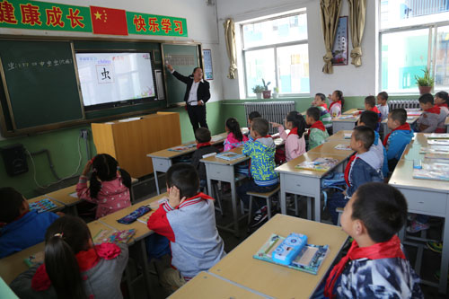 近日,在靜樂縣愛樂希望小學,學生正通過交互式多媒體教學方法上課。老師高興地說:“有了多媒體真方便,以前講一個例題要花幾分鐘抄寫在黑板上,現(xiàn)在只需幾秒鐘就顯示在頻幕上,既節(jié)省時間又提高課堂效率?!苯陙恚摽h加大教育投資力度,改善辦學條件,為學生上課提供便利。(閆曉梅 攝)