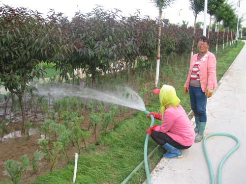 11月7日,河曲縣濱河濕地公園女工手推割草機(jī)割刈樹地的枯萎花草,顯得風(fēng)采奕奕。今年以來,數(shù)十名女工撲下身子,與漢子們一道建設(shè)450畝濕地公園,一次又一次植綠、澆水、鋤草,近日還為綠籬色帶建“防寒屋”、為樹木穿“保暖衣”、收拾花境“殘局”,成為新建公園里四季美麗的風(fēng)景線。(賈金理 攝)