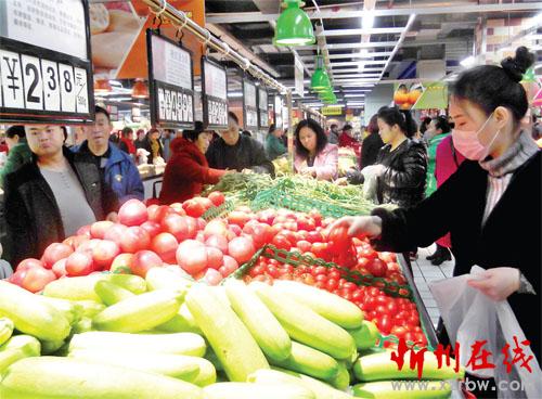 11月18日,原平市市民正在超市挑選各種新鮮蔬菜。該市大力發(fā)展高效設施農(nóng)業(yè)大棚蔬菜種植業(yè),使市民們一年四季吃上了鮮菜,同時也增加了農(nóng)民收入。(趙春曉 攝)