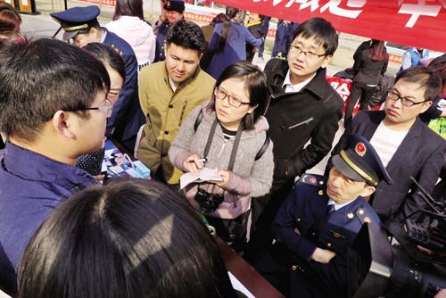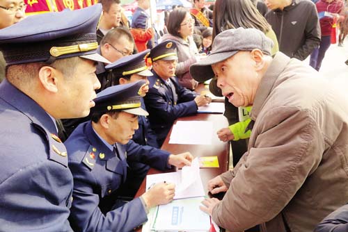3月15日,忻州城區(qū)體育廣場上以“網(wǎng)絡(luò)誠信消費無憂”為主題的3·15國際消費者權(quán)益日宣傳活動火熱進行?;顒蝇F(xiàn)場,各部門和企業(yè)通過發(fā)放宣傳資料、設(shè)立咨詢臺、現(xiàn)場受理群眾投訴舉報、提供服務(wù)等方式,宣傳《消費者權(quán)益保護法》、《反不正當競爭法》、《無照經(jīng)營查處辦法》等法律法規(guī)以及食品藥品安全、識假辨假等各類知識,吸引了眾多群眾積極參與。受理投訴臺前,陸續(xù)有消費者前來投訴,且有不少年輕人,所反映的問題既有涉及家具、汽車等金額較大的線下消費活動,也有通過電商平臺進行的線上交易。市工商局、消費者協(xié)會的工作人員將消費者投訴的問題一一記錄在冊,并表示會盡快調(diào)查處理。本版圖片攝影 魯明強 王 菲