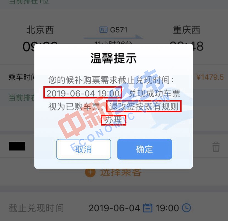 4、提交候補(bǔ)訂單。此時(shí)會(huì)出現(xiàn)購(gòu)票提示頁(yè)面,可供大家確認(rèn)截止兌現(xiàn)時(shí)間。