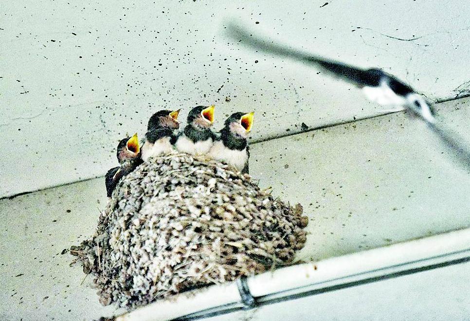 燕子父母“落戶”的地方是千峰北路集祥美地西區(qū)2號樓新丁”A座2單元門上方。3年前,在該單元大門斜上方,燕子父母搭了個窩,一直與這里的居民和諧相處。對兩只燕子的飛出飛進,居民們早已司空見慣。燕子是候鳥,冬去春來,3年來,居民們誰也沒動過腦筋,拆了它們的家。用李女士的話來說,燕子是益鳥,夏天能捕食蚊子和蒼蠅等害蟲。這樣的鄰居與我們?yōu)榘椋螛凡粸?!為了不讓燕子的排泄物影響到單元門前地面的衛(wèi)生,小區(qū)保潔員這么多年一直自覺自愿地承擔(dān)著清掃任務(wù)。