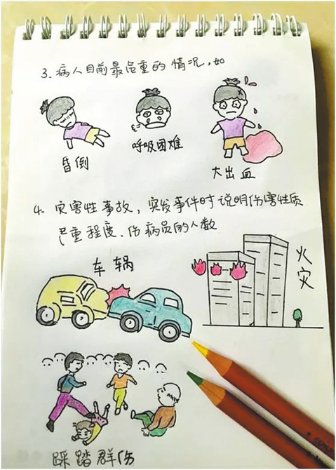 說(shuō)起畫這套漫畫的原因,何瑾說(shuō),這是從實(shí)際的工作出發(fā)得來(lái)的。有不少人不清楚怎么撥打120急救電話,有的人對(duì)撥打120的相關(guān)要求并不是很了解,想象和實(shí)際上還是有差距,通過(guò)漫畫,讓更多的人了解正確撥打120急救電話的方法和步驟。(華西城市讀本記者陳伯強(qiáng) 受訪者供圖)