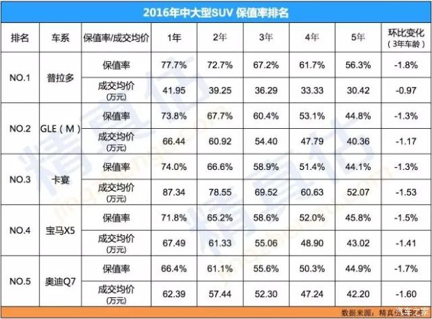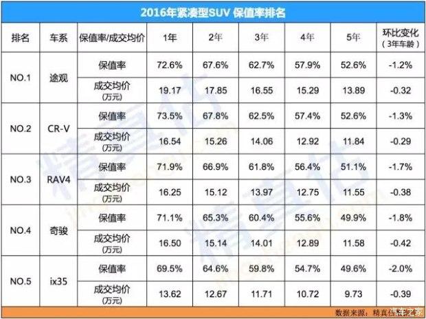 2016年度二手車保值率推薦車型(精真估)