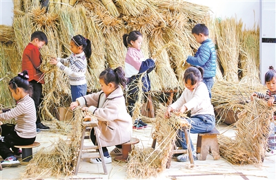 近日,江蘇如皋經濟技術開發(fā)區(qū)實驗幼兒園的小朋友在學習編草簾。大雪節(jié)氣剛過,該園開展知民俗,弘揚傳統(tǒng)文化活動,教師帶領小朋友走進田野,學習用秸稈編織草繩、草簾,用于包裹過冬果樹。